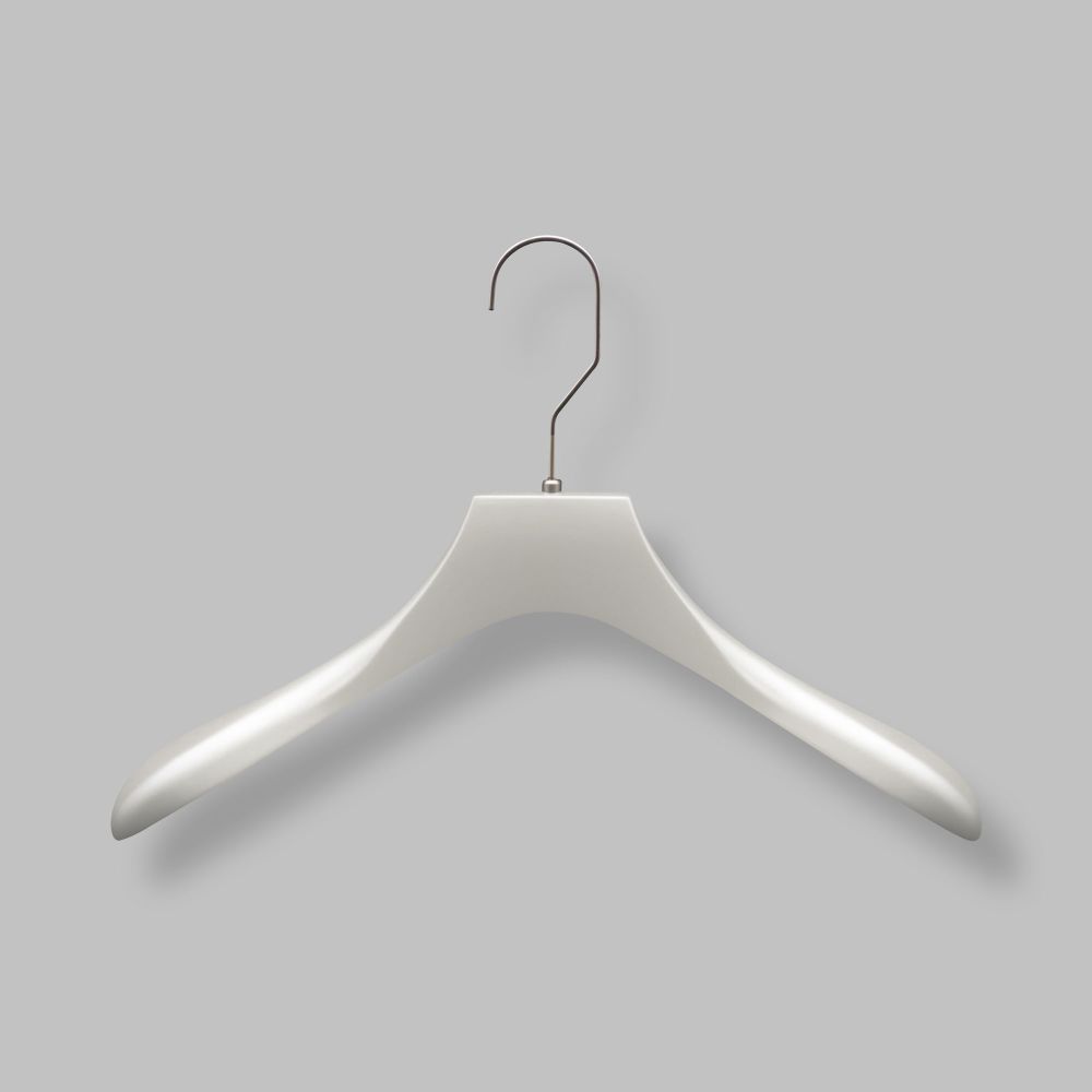 Der Kleiderbügel HGR-ABS-003 besteht aus hochwertigem ABS-Kunststoff und hat kompakte Maße von 44 x 5,5 cm. Die klare RAL 9010-Oberfläche (reinweiß) verleiht ihm eine elegante, neutrale Ausstrahlung – ideal für den Einsatz in Geschäften, Showrooms oder Garderoben.