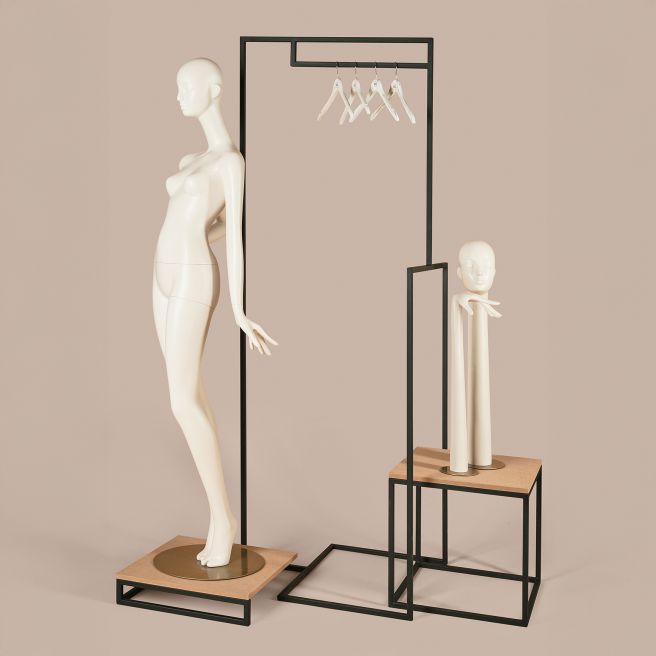 Eine besondere Position innerhalb von MORE STUDIO nimmt die Kollektion FLO ein. Dieses Konzept verbindet Torsomodul und Kleiderständer zu einem einzigartigen Präsentationsobjekt. FLO richtet sich an Marken, die nach neuen Wegen suchen, Kleidung zu präsentieren – leichter als klassische Schaufensterpuppen, aber ebenso ausdrucksstark. Die Kollektion umfasst hängende Torsi sowie Varianten auf Metallgestellen, die sich flexibel mit anderen Ladeneinrichtungselementen kombinieren lassen. FLO eignet sich ideal für konzeptionelle Setups, Premium-Boutiquen und moderne Showrooms.