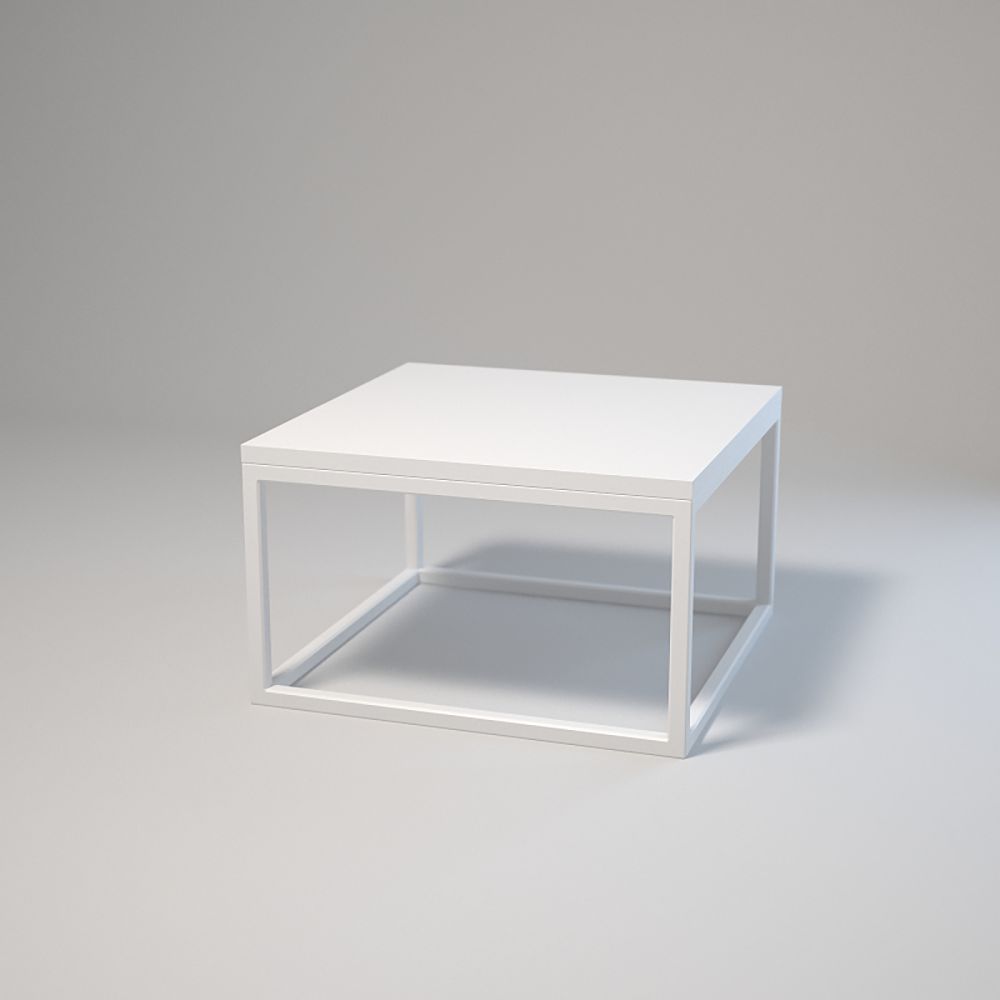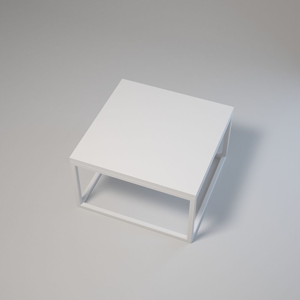 Maße: 50x50 cm, Höhe: 30 cm. Pulverbeschichtete Stahlprofile 20x20x1,5 mm. Laminierte Platte mit Kante, Montage mit Muffen und Schrauben. Verstellbare Füße. Farben: Weiß oder Schwarz.