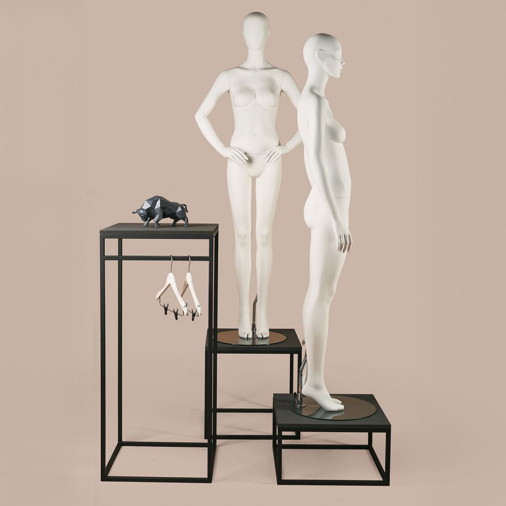 Der PD50 eignet sich ideal für die Präsentation von Taschen, Schuhen, Accessoires oder sitzenden Schaufensterfiguren. Mit seiner ausgewogenen Form passt er sich hervorragend in modulare, mehrstufige Gestaltungskonzepte ein.