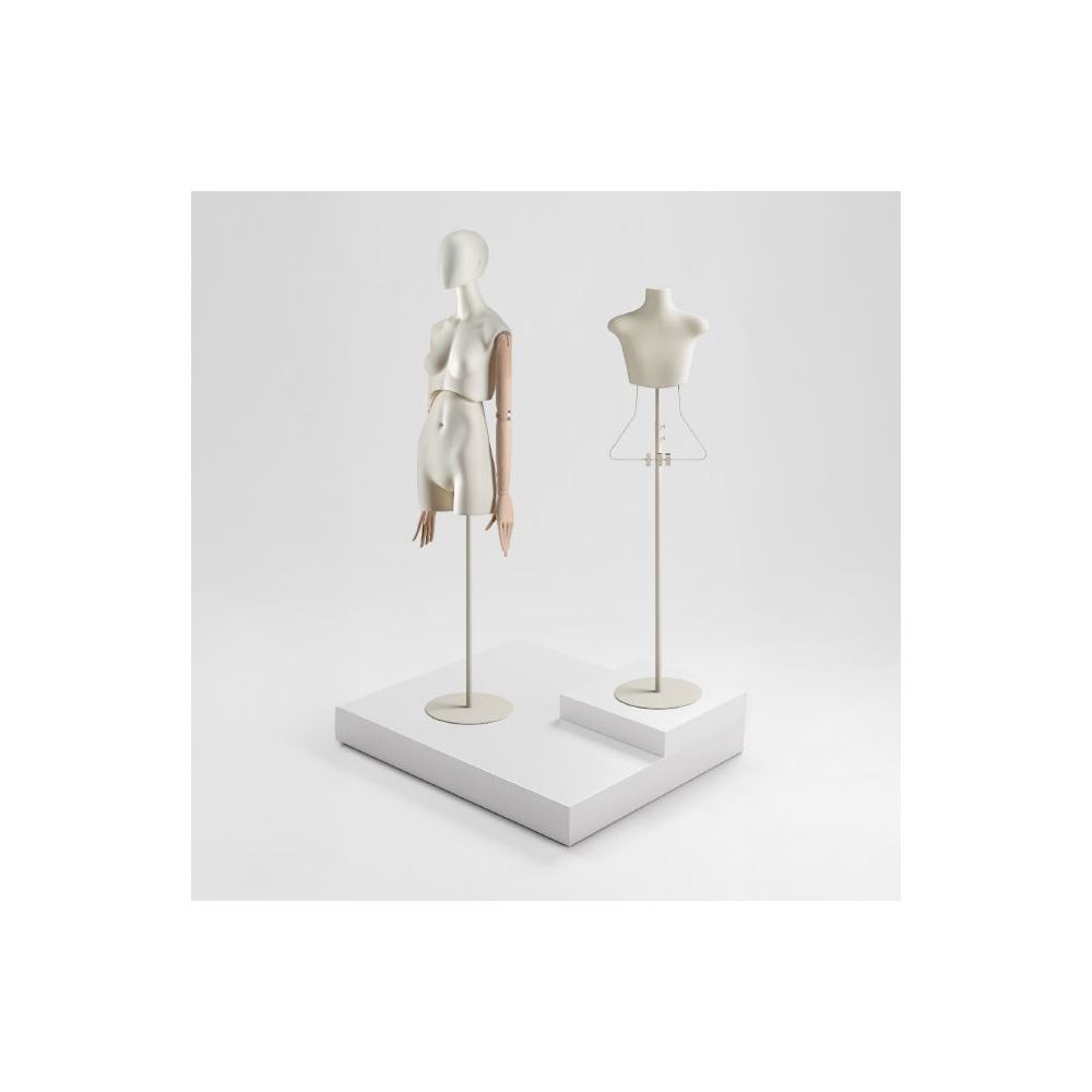 Gefertigt aus weiß-matt laminierter MDF-Platte, fügen sich die Podeste harmonisch in Schaufenster, Showrooms und exklusive Ladenkonzepte ein. Durch ihr niedriges Profil und die klare Geometrie rücken sie das Produkt in den Fokus – stilvoll und unaufdringlich.