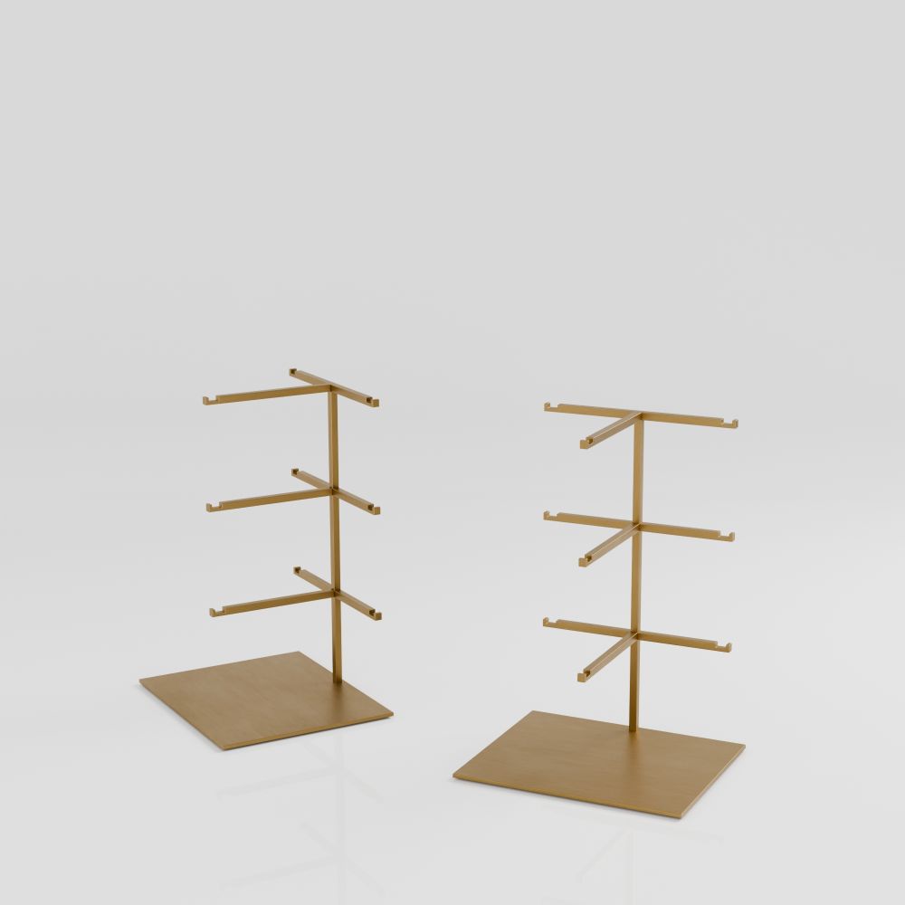Der ES-GY-02-GB Brillenständer ermöglicht die gleichzeitige Präsentation von bis zu drei Brillenpaaren – ästhetisch, übersichtlich und im Einklang mit der visuellen Sprache moderner Marken. Entwickelt für Verkaufsräume, die Wert auf Detailqualität und professionelle Präsentationsorganisation legen.