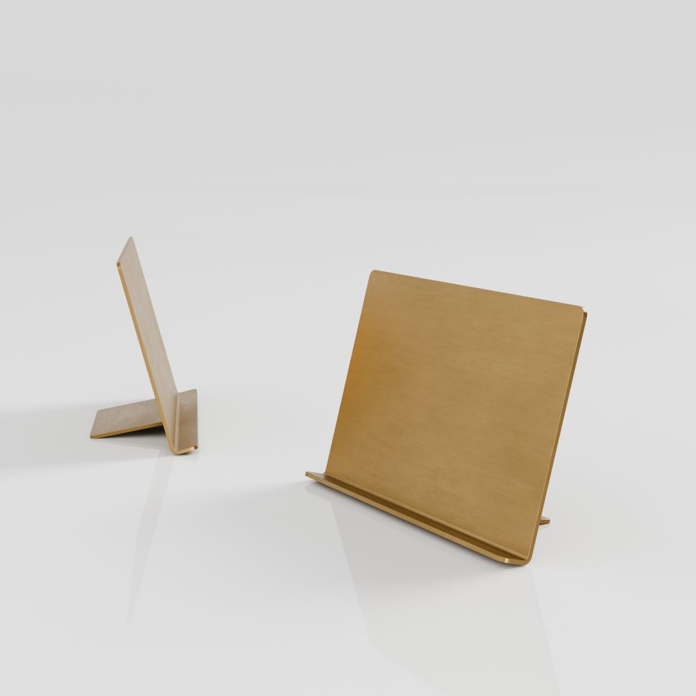 Das Modell ES-L-01-GB ist ein kleiner, aber äußerst funktionaler Aufsteller für Preisschilder, Visitenkarten oder andere Informationselemente, entwickelt für eine ästhetisch geordnete Verkaufsfläche. Gefertigt aus Metall mit einer eleganten, gebürsteten Goldoberfläche verkörpert er perfekt die Werte der ESSENTIALS-Serie – Schlichtheit, Stil und visuelle Einheit.