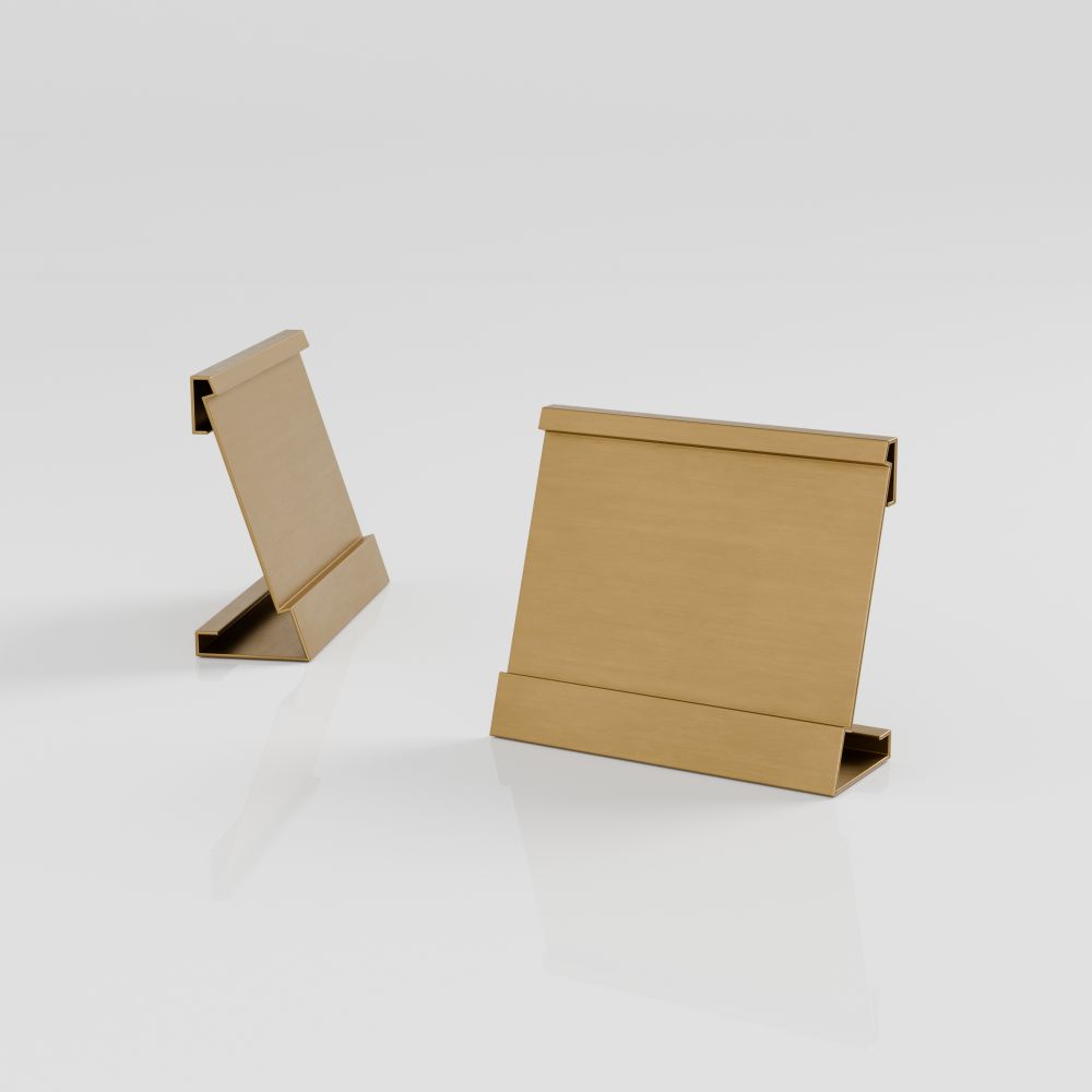Das Modell ES-L-02-GB ist ein Displayhalter für Preisschilder, Visitenkarten oder Produktinformationen – ideal für etwas größere Inhalte. Mit den Maßen 10 × 8 × 3,5 cm sorgt er für optimale Sichtbarkeit, perfekt für Kollektionsbeschreibungen, Materialangaben oder spezielle Preiskennzeichnungen.