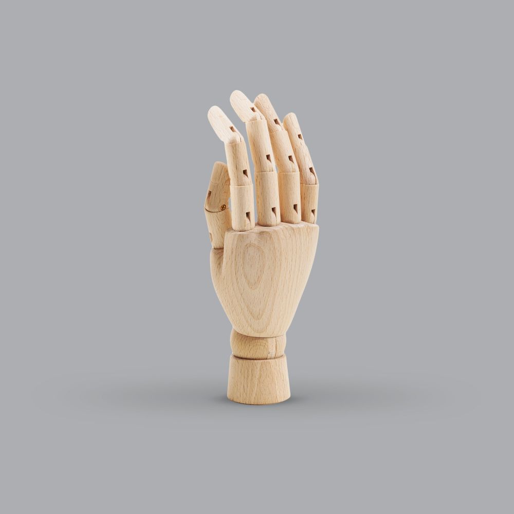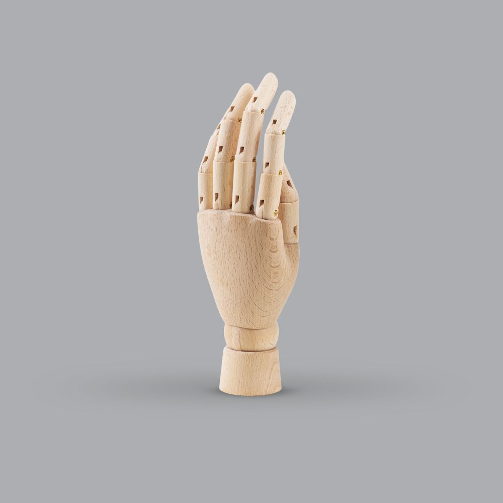 Unser Holzhand-Präsentationsständer ist ein hochwertiges Produkt, das eine Schneiderwerkstatt-Atmosphäre schafft. Seine Vielseitigkeit ermöglicht es, dass er zu verschiedenen Stilen und Ladenkonzepten passt. Die beweglichen Finger des Präsentationsständers ermöglichen eine flexible Anordnung der Accessoires, was Ihnen mehr Freiheit bei der Gestaltung interessanter Kompositionen gibt.