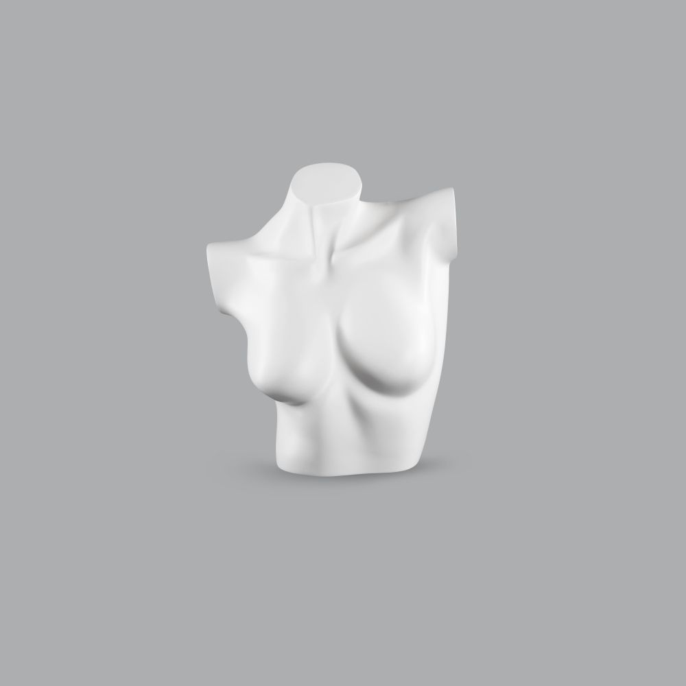 Die hier vorgestellten Schaufensterpuppen sind ideal für kleinere BHs in der Größe 70B. Sie finden aber auch etwas größere und Plus-Size-Displays in unserem Sortiment. Bei diesem Modell haben wir uns ausschließlich auf die Darstellung der Brüste konzentriert, auf denen die gesamte Kollektion der verfügbaren BHs präsentiert werden kann. Das matte Weiß passt perfekt zu allen Arten von Dessous - von der Sport- über die Alltags- bis zur Abendgarderobe.