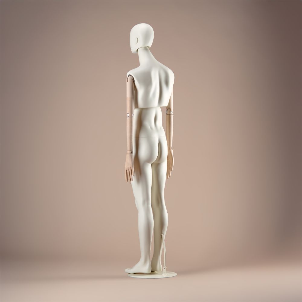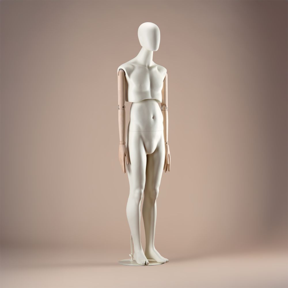 LUMINA LUM1-A ist eine männliche Kleiderpuppe, die eine kreative Inszenierung von Modekollektionen ermöglicht. Der innovative Torso kann gedreht und geneigt werden, was zahlreiche Gestaltungsmöglichkeiten eröffnet. Ein beweglicher Kopf und Holzarme sorgen für eine natürliche Darstellung von Gesten. Das Finish in gebrochenem Weiß (RAL9010) macht ihn zur perfekten Ergänzung für stilvolle Modegeschäfte.