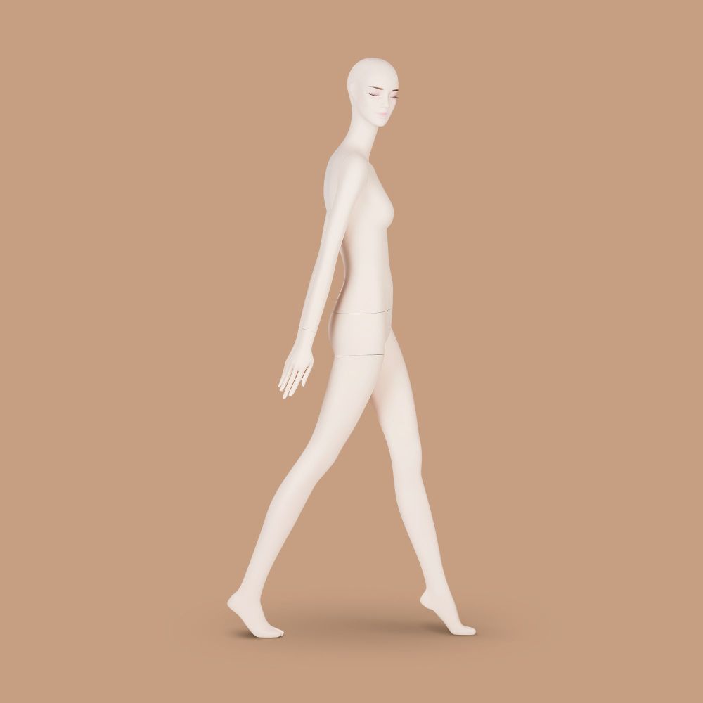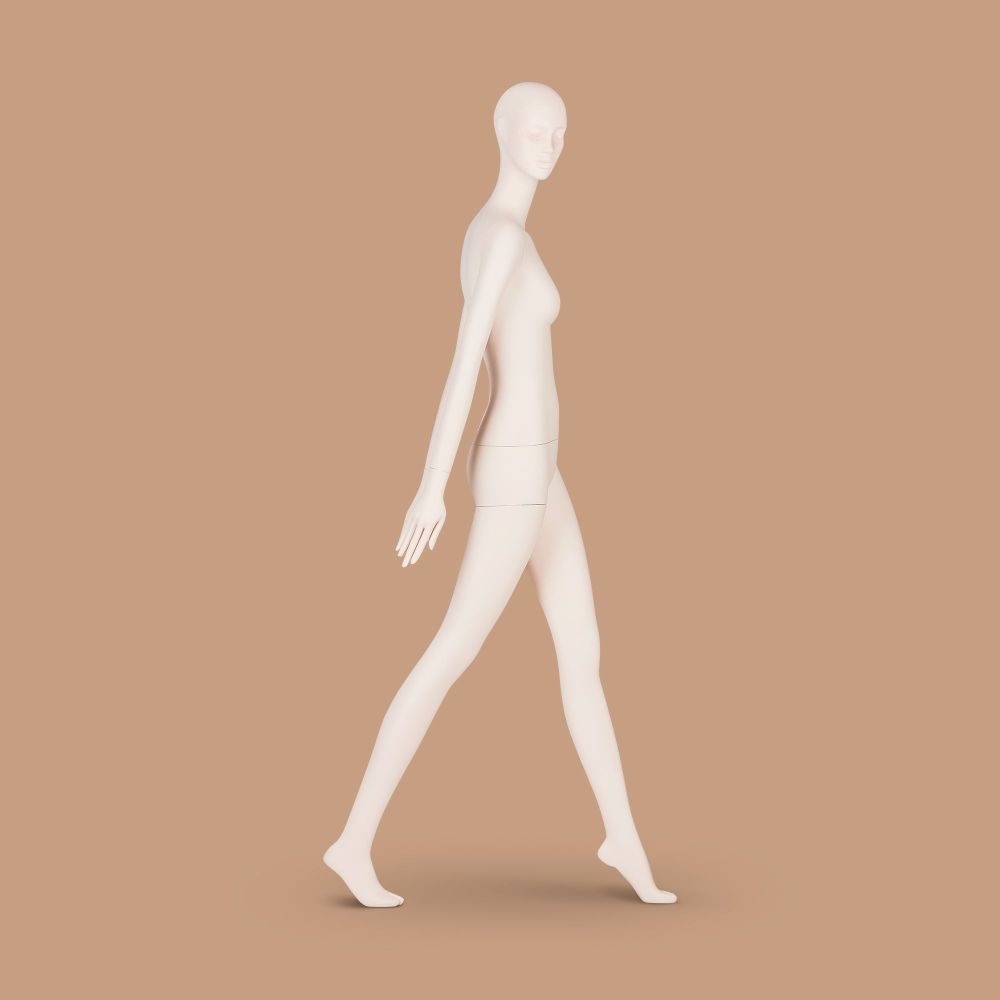 Der Aufbau eines Schaufensters, das für Premiumgeschäfte geeignet ist, erfordert die Auswahl von Lösungen, die nicht nur von höchster Qualität sind, sondern auch über ein außergewöhnliches Design verfügen. Die lebensechte Schaufensterpuppe weiblich aus der INDIVIDUAL-Kollektion ist eine ausgezeichnete Wahl. Die Figur fällt vor allem durch ihre dynamische Pose ins Auge. Das Modell zeigt eine Frau in Bewegung: das linke Bein macht einen Schritt nach vorne, das rechte Bein ist hinten, und die Hüfte und der Oberkörper sind seitlich gedreht.