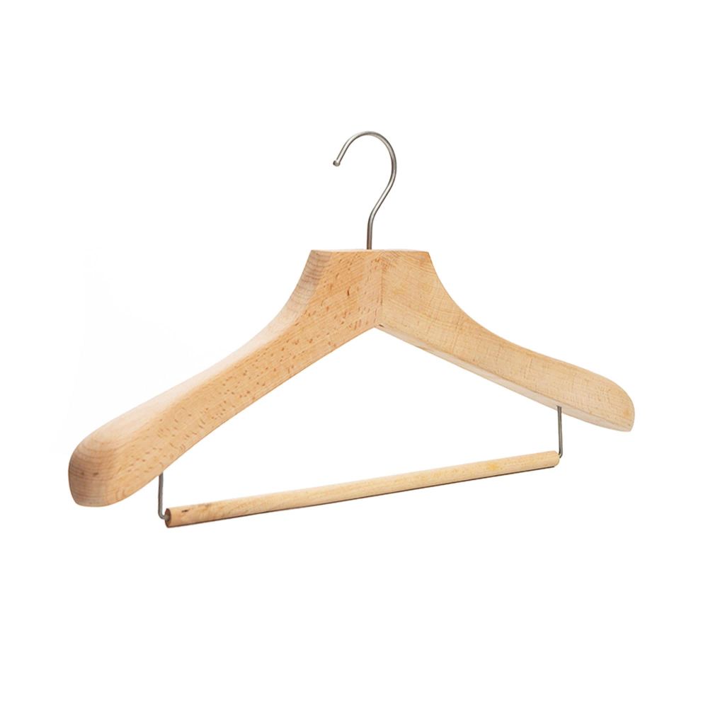 HGR-WD-007 – Kleiderbügel aus Buchenholz mit verchromtem Accessoire