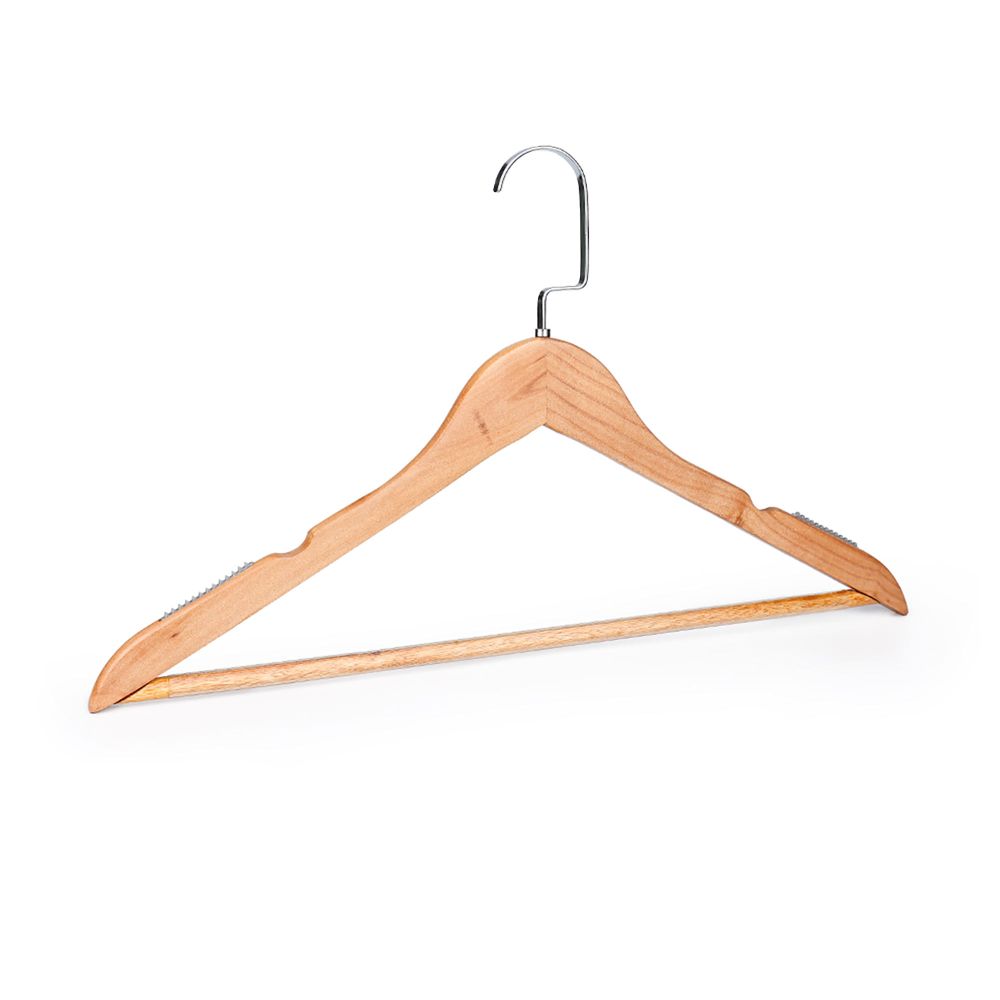 Der HGR-WD-010 ist ein funktioneller Holzbügel aus Lotusholz, der durch sein schlichtes Design und die praktische Ausstattung überzeugt. Mit den Maßen 44,5 x 1,2 cm eignet er sich ideal zum Aufhängen von Blusen, Hemden, Hosen oder leichten Jacken.
